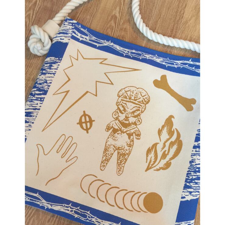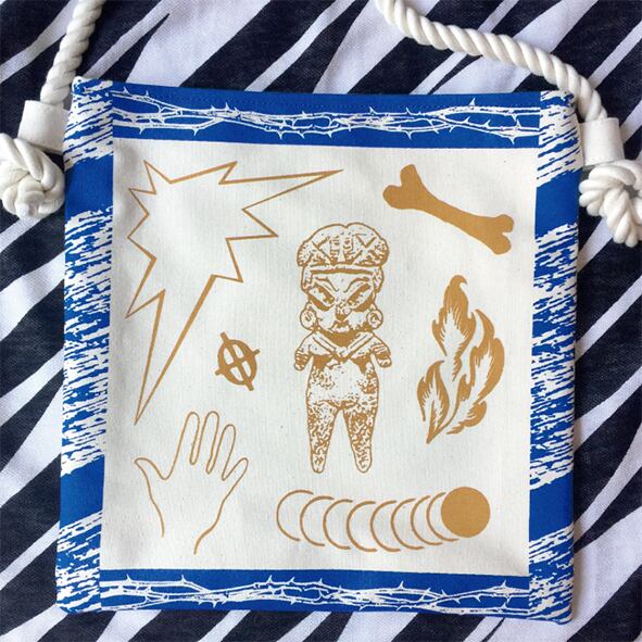 中厚手キャンバス地:生成色 / シルクスクリーン:青×黄土色