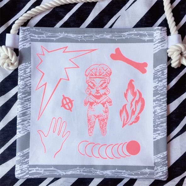 中厚手キャンバス地:白 / シルクスクリーン:蛍光ピンク×灰色