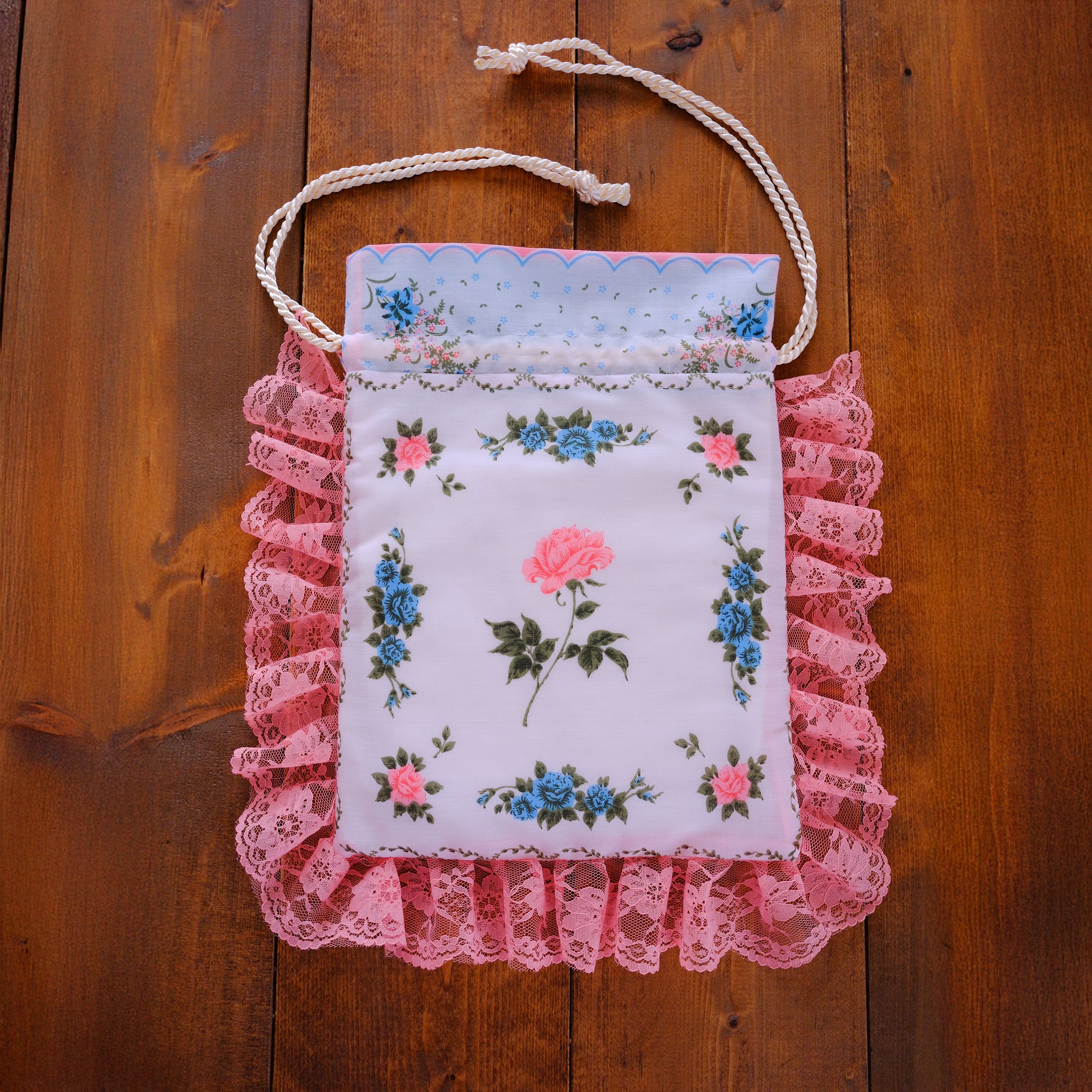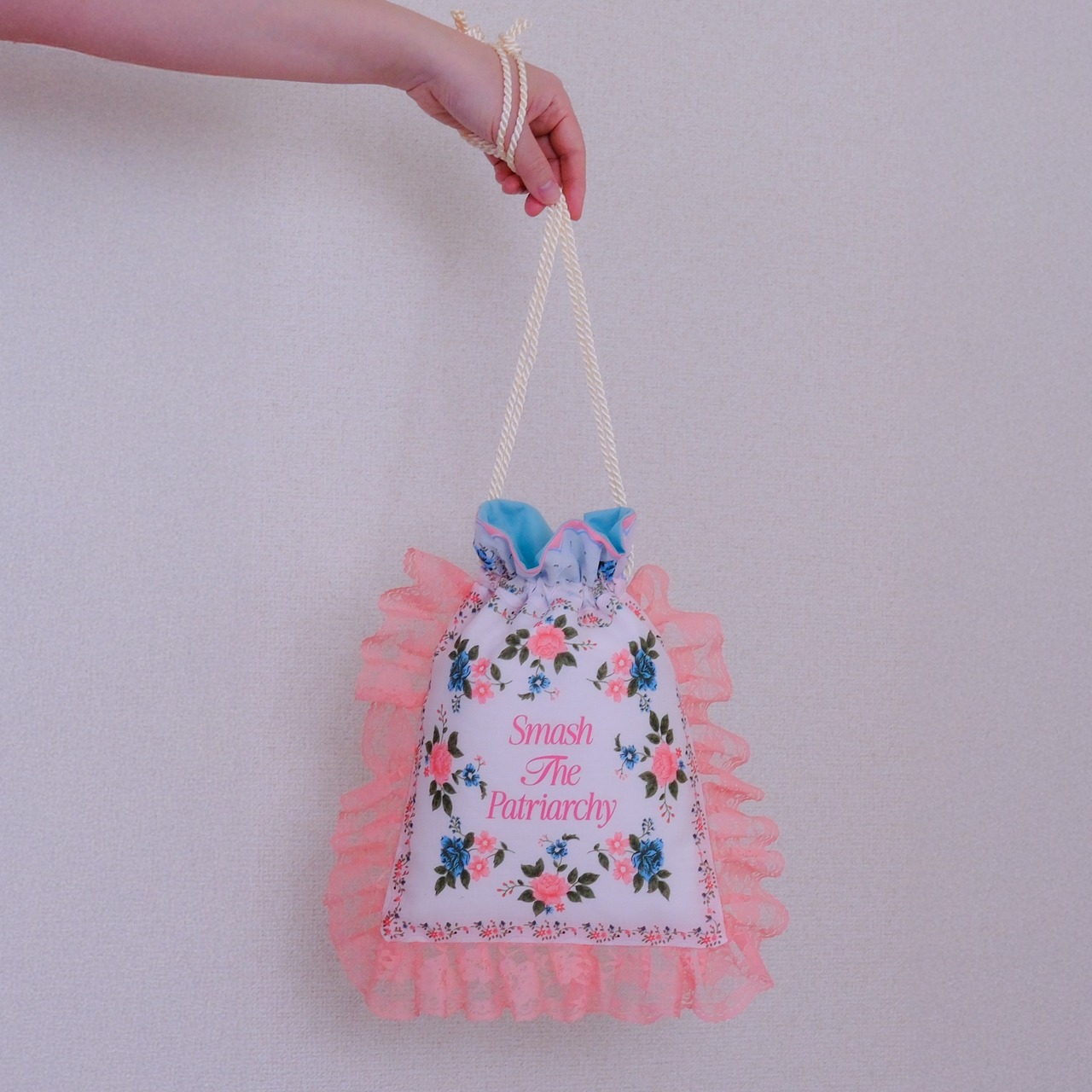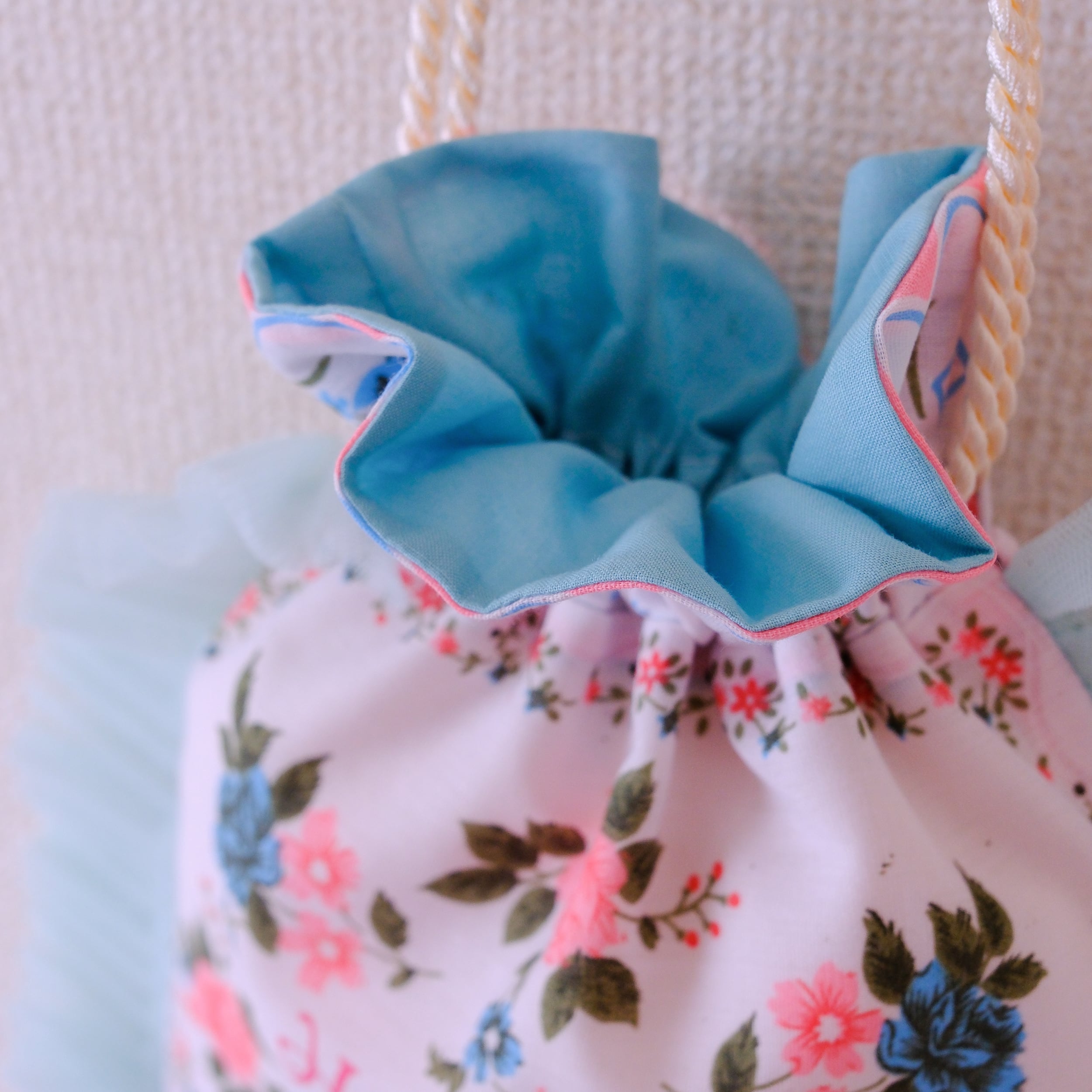 巾着ポーチに仕立てました。表・裏で柄が違います。