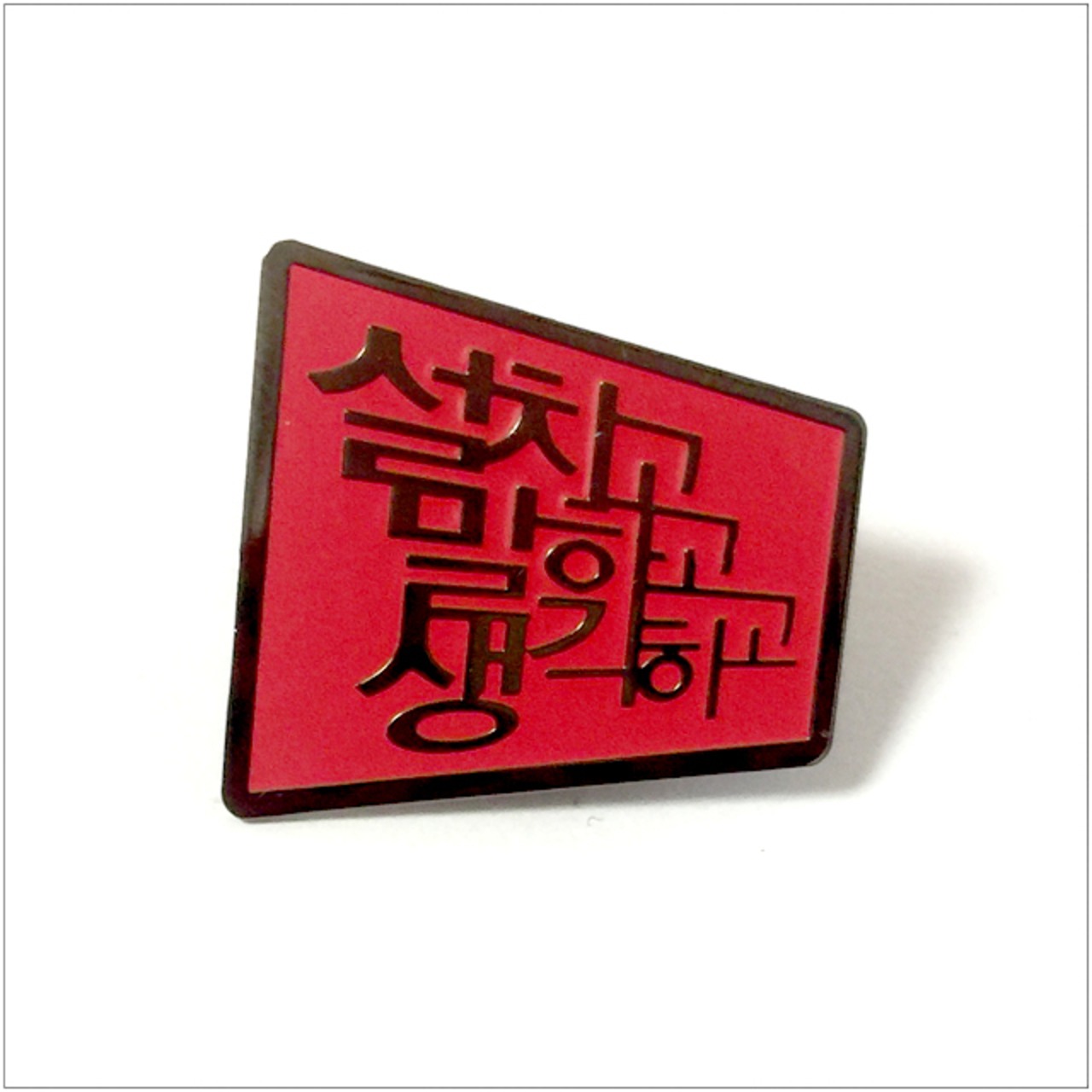 韓国のTV番組で、男性芸人が女性モデルに対して言った「騒いで話して考える、私が嫌いな(女の)全てを持ってるな」という言葉を、フェミニストたちが皮肉を込めてそのままスローガンとして採用した「설치고 말하고 생각하고」(騒いで話して考える)をモチーフにしたエナメルピン。
