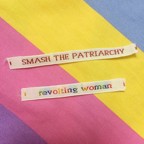 UKのフェミニストパンクス/ジンスタ/アーティストのレイチェル・ハウスによる布製メッセージタグ2本セット。洋服や帽子、バッグなどなど…好きなところに縫い付けよう。