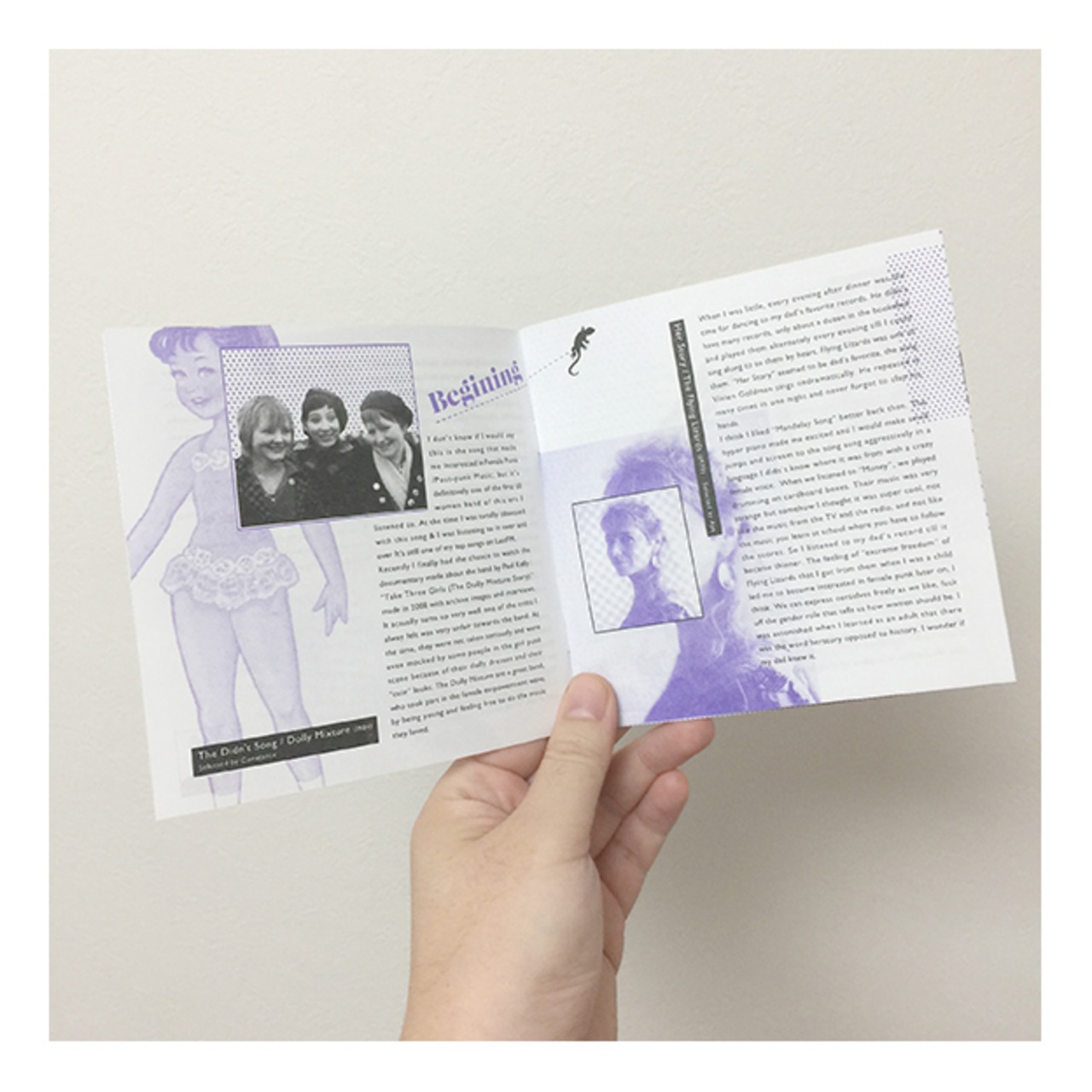 PLAYBACK LADY ZINE is a zine by two women writing personal stories like a back to back DJ set of the songs by their favorite female musicians.